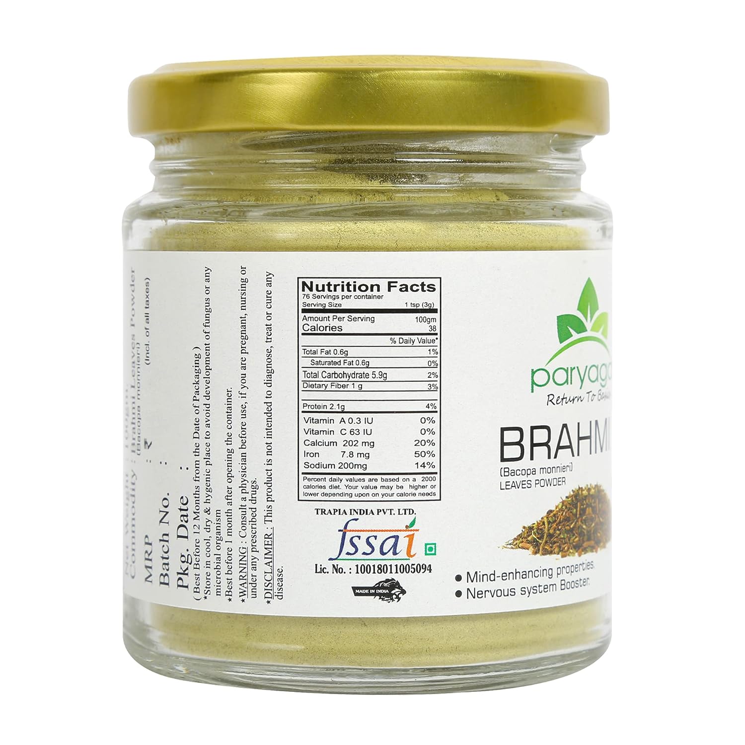 - PURE AND NATURAL: Paryagat Brahmi powder is made from the leaves of Bacopa monnieri. It’s Gluten Free, Non-GMO, Preservatives & Chemical Free. It is GMP Certified & FDA Approved.